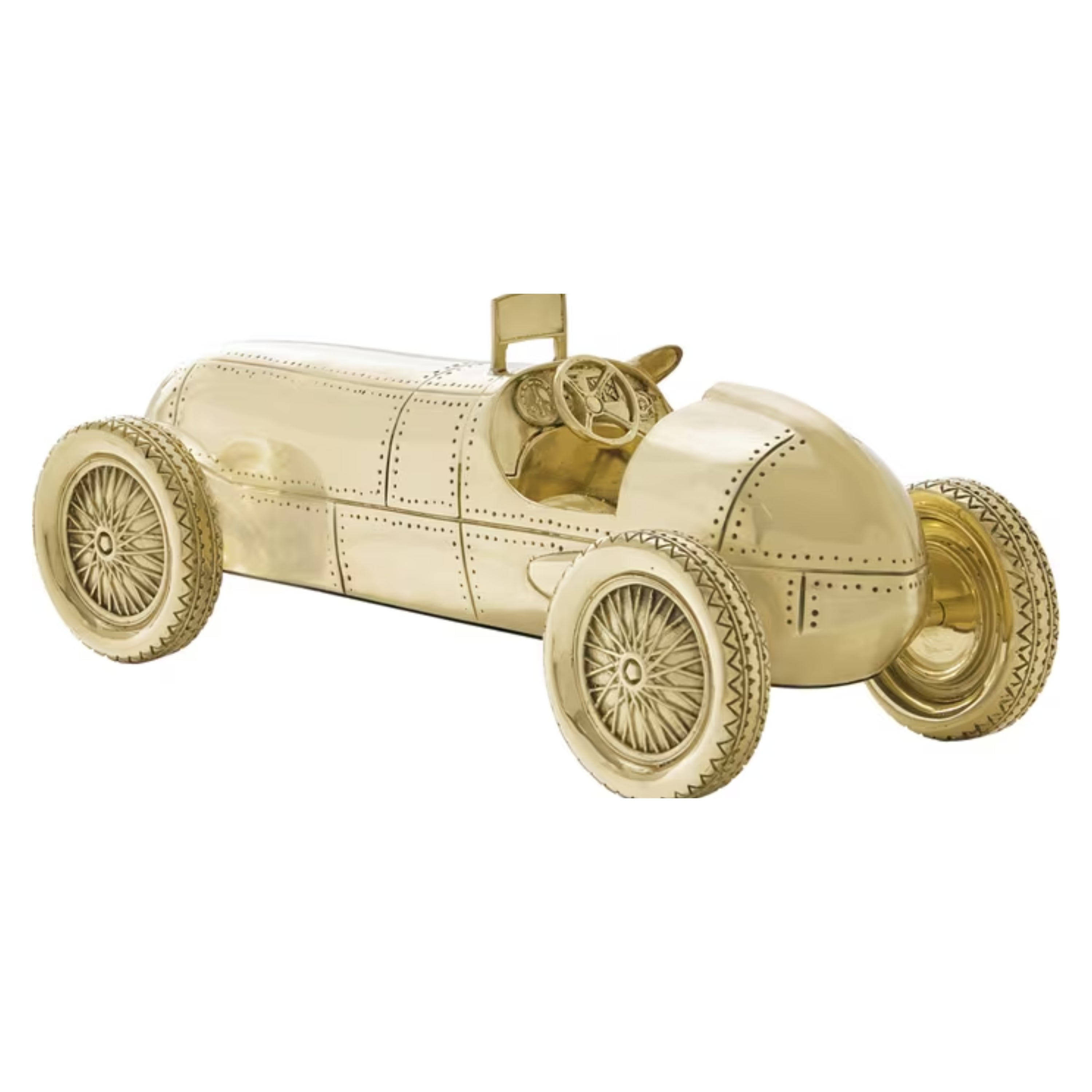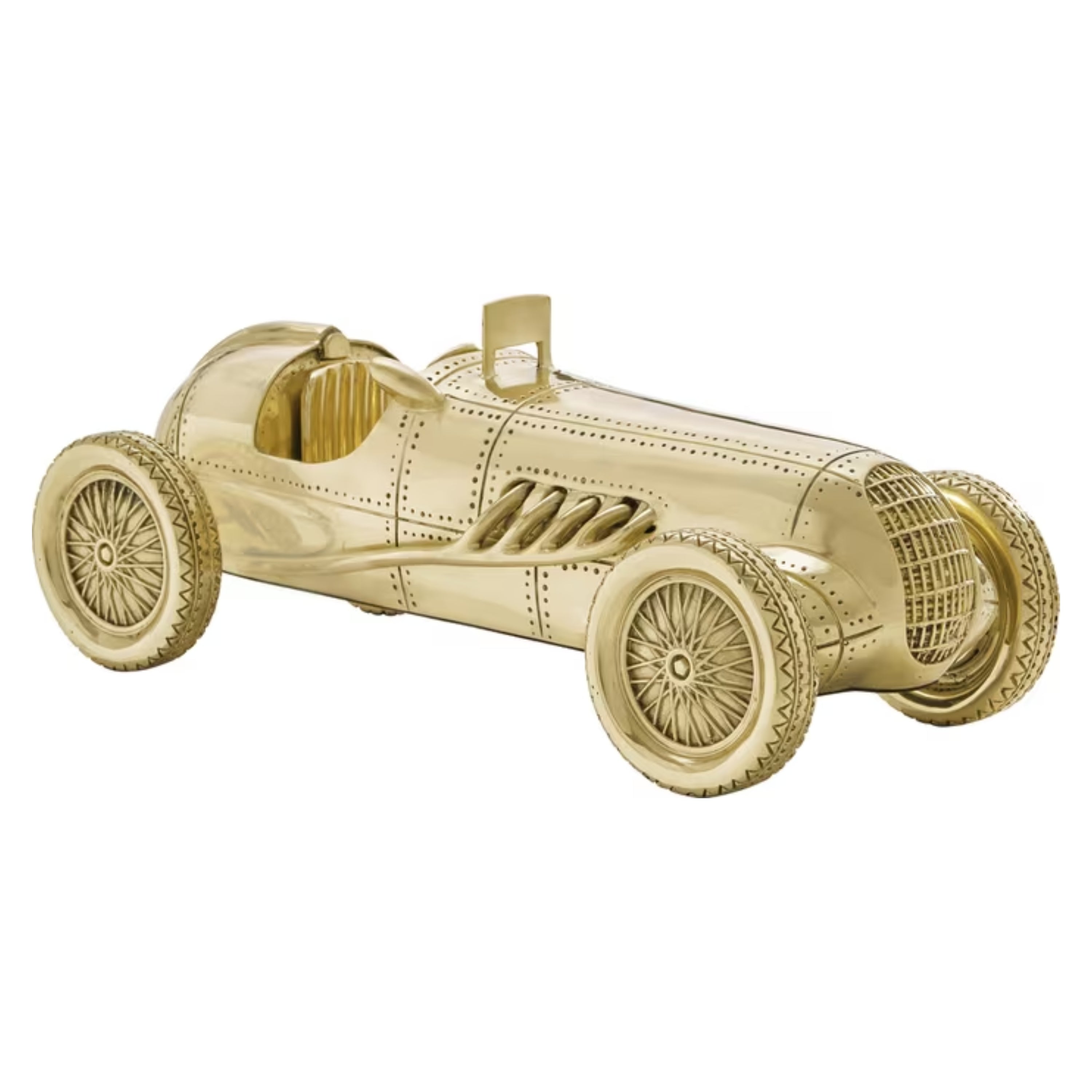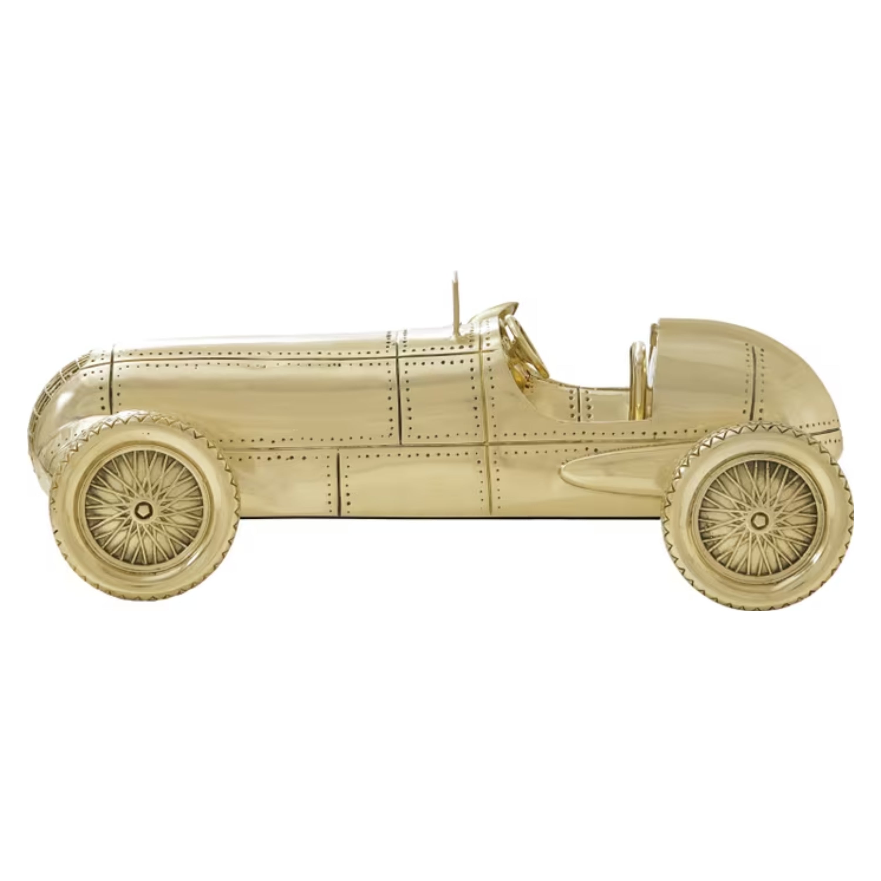 A captivating tribute to classic motor racing, the Brooklands Sculpture is crafted in polished brass with exquisite detailing. Inspired by vintage grand prix cars, this decorative piece brings an air of nostalgia and sophistication to any luxury interior, office, or collector’s display.