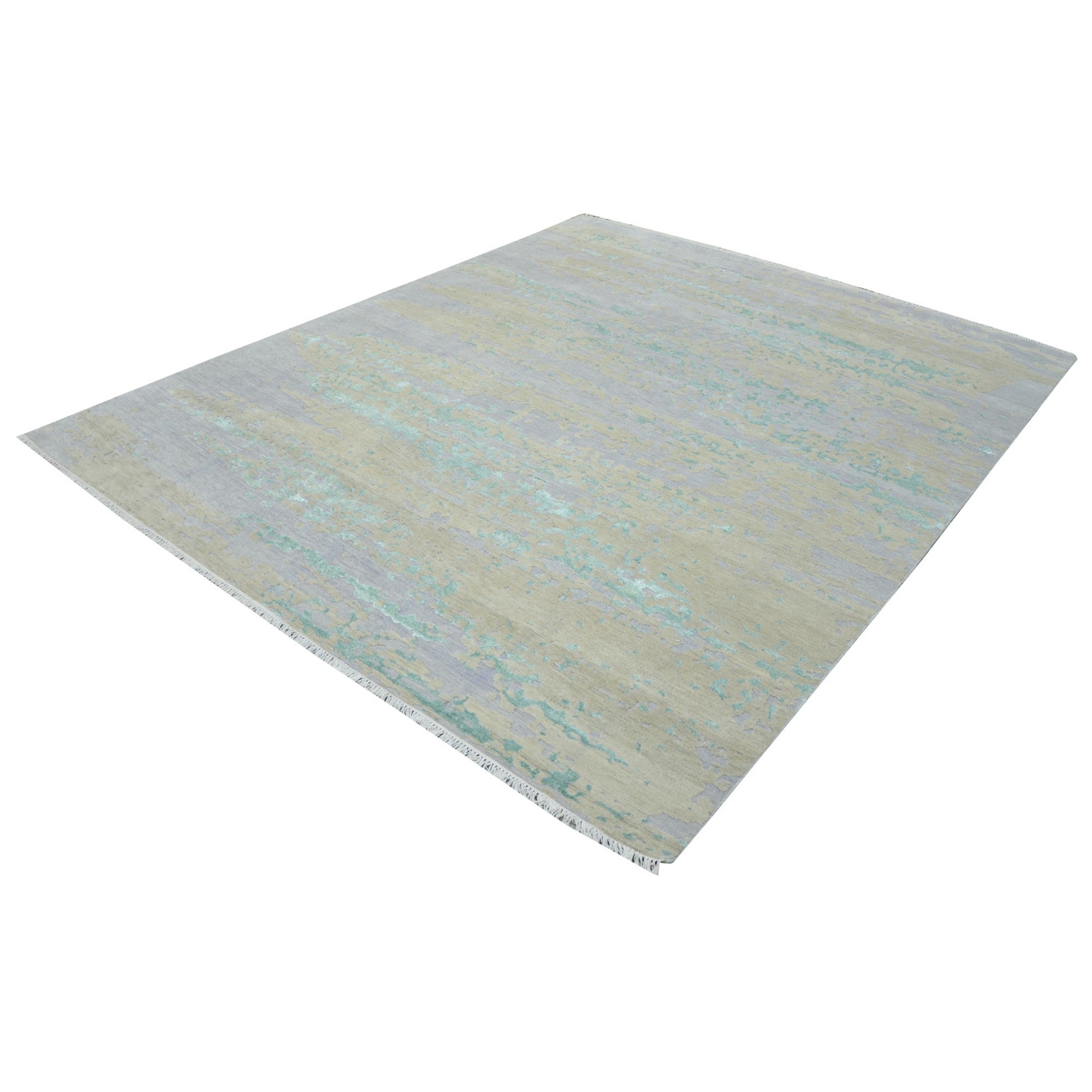 A contemporary masterpiece in serene tones of aqua, sage, and silver-grey, the Aqua Drift carpet blends natural artistry with sophisticated elegance. Hand knotted from 80% hand-spun wool and 20% natural silk, its fluid abstract design evokes the calm of moving water. The subtle sheen of silk adds depth and dimension, creating a tranquil foundation for modern or transitional interiors. A refined choice for those who value texture, craftsmanship, and organic beauty.