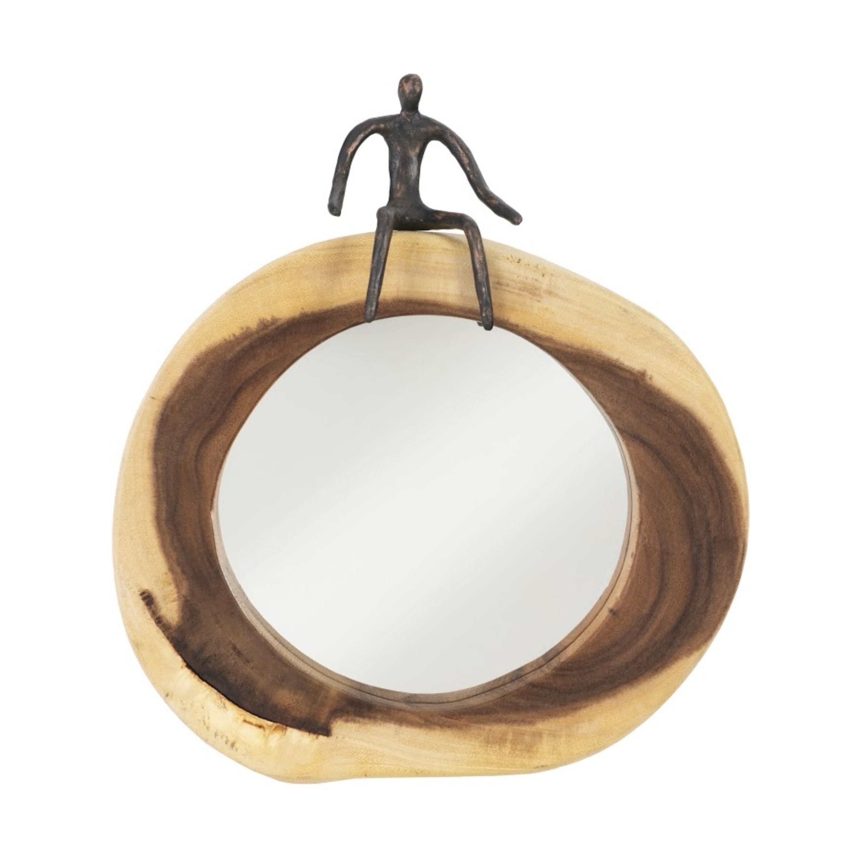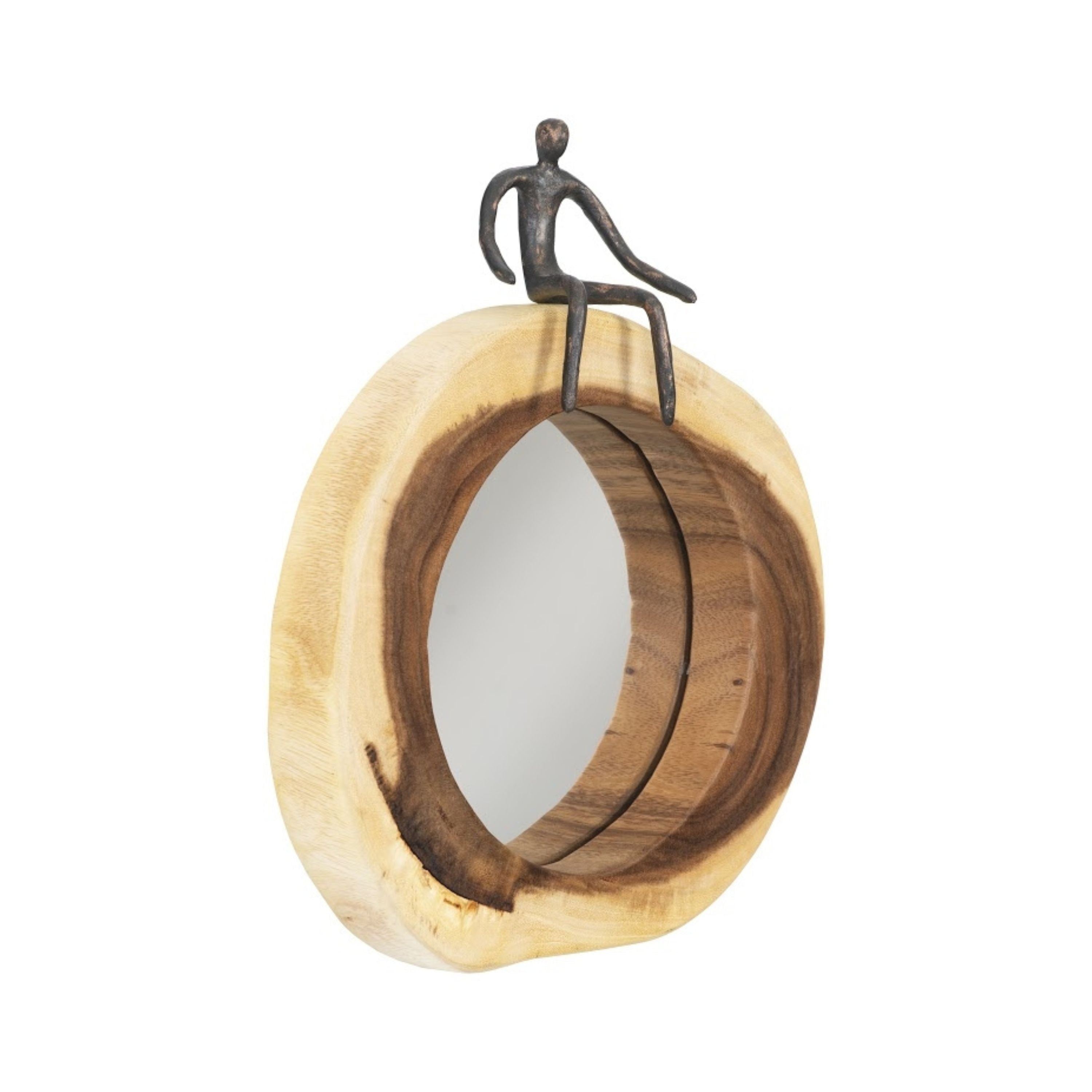 The Sitting Figure Cross Cut Mirror is a round decorative mirror made of chamcha wood ornamented with a whimsical metal figure in a bronze finish. Because this piece is crafted from natural solid wood, color and woodgrain character may vary, adding a unique personality to your piece. The Atlas Collection, which reflects the ethos that Phillips Collection personifies—modern organic—has a storied namesake. In Greek mythology, Atlas was the Titan god of endurance whom Zeus tasked with holding up the celestial heavens for eternity. We’ve taken a piece of chamcha wood that would have been one of Nature’s castaways and made it into an elemental design statement. We offer the Cross Cut Mirrors with five different figures, which makes them perfect for a gallery wall installation.This piece is crafted from natural solid wood. Color and character of wood grain may vary, adding a unique character to your piece.