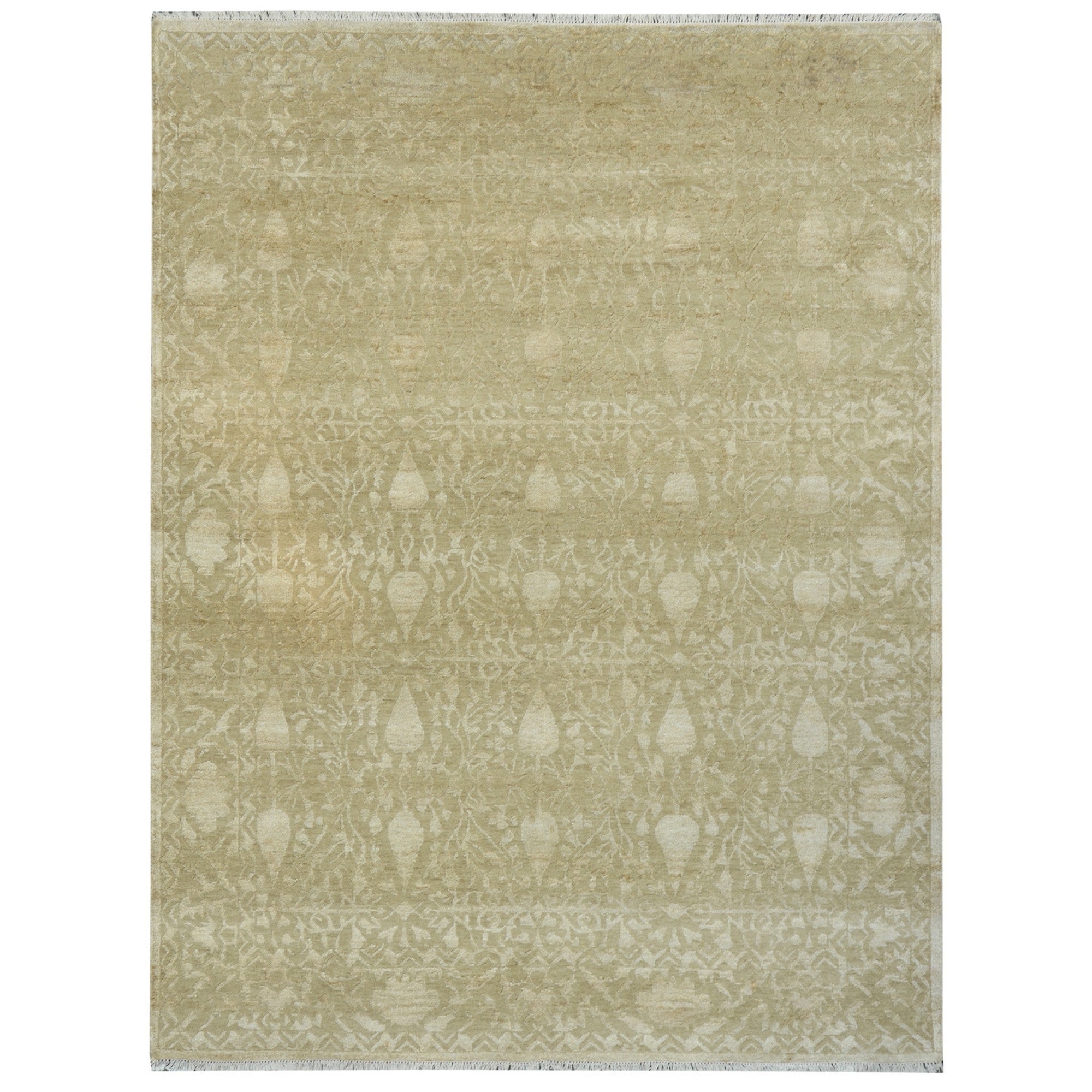 The Aurelia Hand Knotted Carpet is a refined expression of quiet luxury, woven from hand-spun wool and natural silk to achieve a soft, luminous finish. Gentle layers of warm gold and muted ivory create a subtle, timeworn pattern that feels both classic and contemporary. The silk accents catch the light with understated elegance, adding depth and warmth without overpowering the space. Designed to complement sophisticated interiors, Aurelia brings a sense of calm opulence and timeless refinement.
