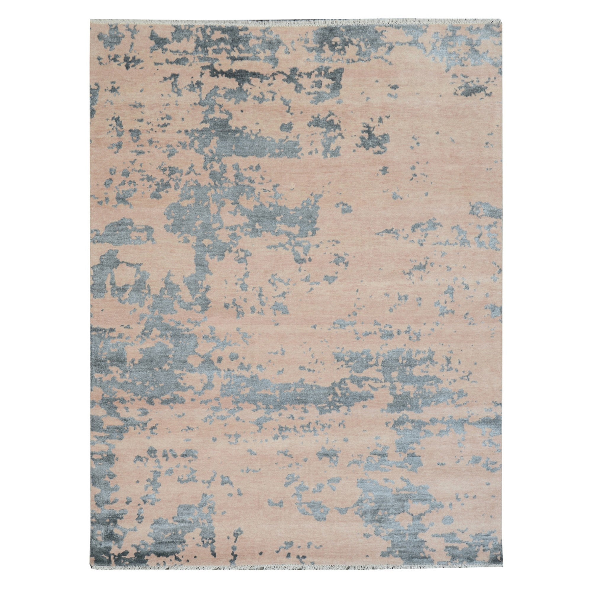 Elevate your interior with this contemporary hand-knotted carpet, blending soft blush tones with silvery pewter accents. Crafted from 80% hand-spun wool and 20% natural silk, it offers a subtle sheen and a rich texture underfoot. The abstract pattern evokes a modern artistic expression, making it ideal for elegant living rooms or serene bedrooms. A true statement of artisanal craftsmanship and understated luxury.
