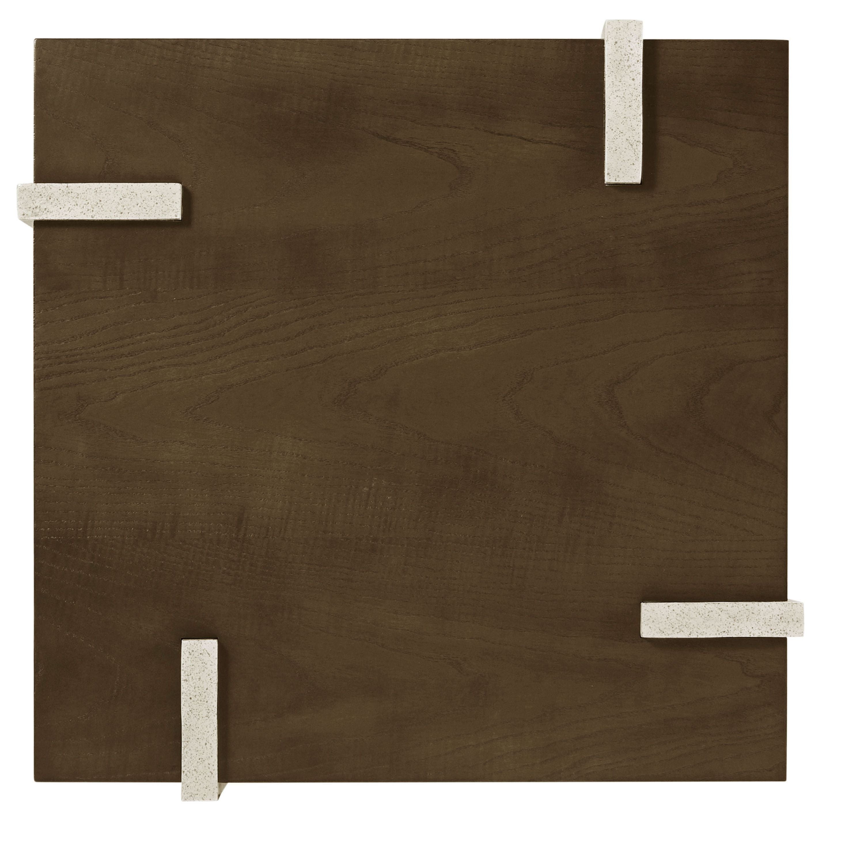 Dynamic side table made of figured cathedral ash in your choice of Dune or Earth finish. The legs of this table are done in our stone-like porous Mineral finish.