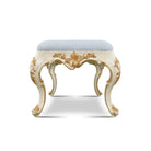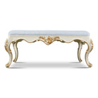 The Élise Ornate Luxury Bench is crafted in ivory with gilded floral carvings and elegant cabriole legs. Its plush upholstered seat offers refined comfort, while the hand-applied gold accents bring timeless Baroque elegance. Perfect as a statement in bedrooms, dressing areas, or grand living spaces.