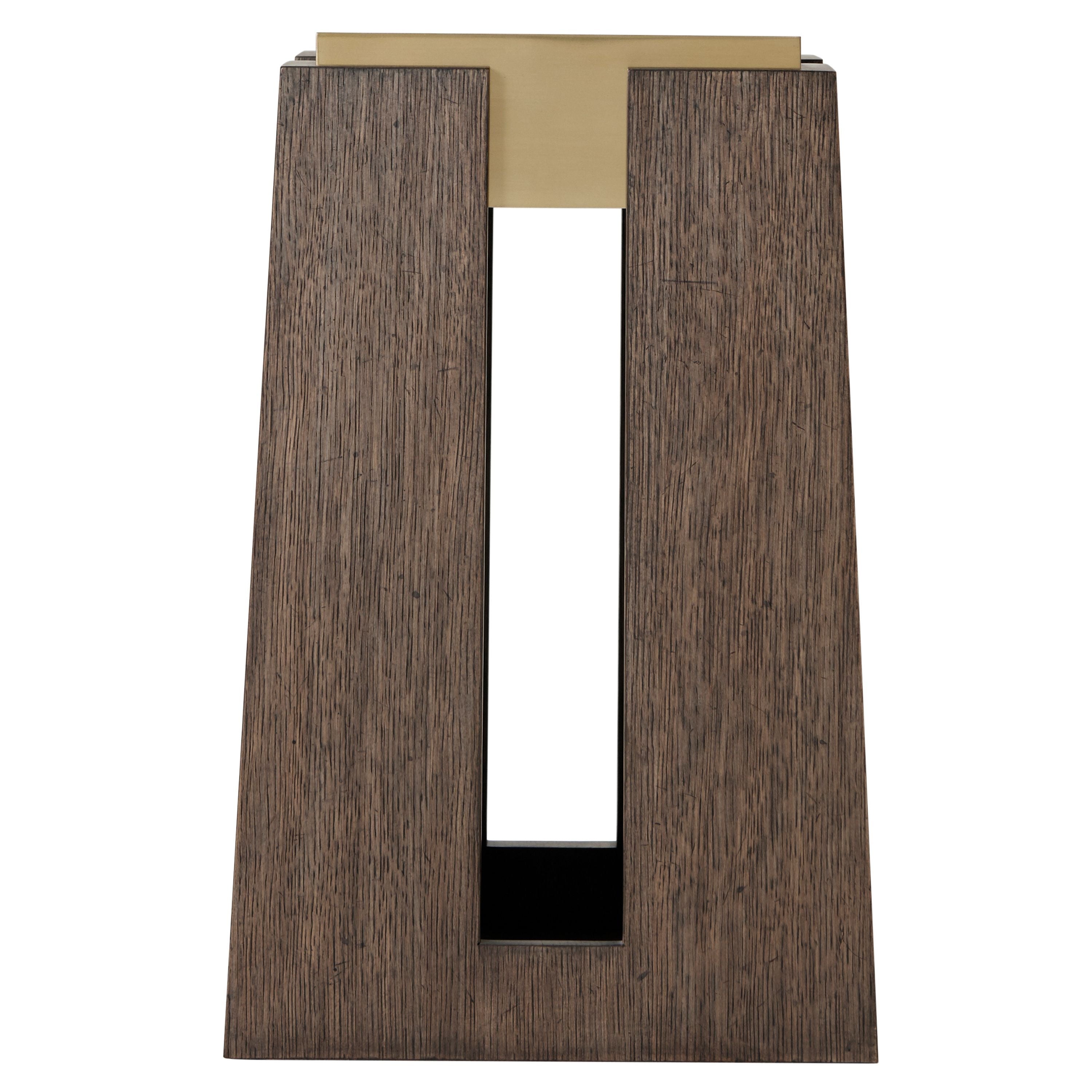 Clamped within Quartered Oak Veneered Pierced Pyramid Supports