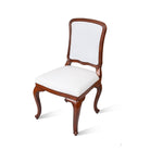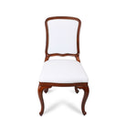 The Louis XV Classic Dining Chair embodies timeless French elegance with its gently curved cabriole legs and sculpted wooden frame in a rich mahogany finish. Upholstered in a crisp white fabric, the seat and back offer refined comfort while highlighting the craftsmanship of its carved details. A versatile piece that seamlessly blends with formal dining settings, this chair reflects the artistry of classic European design and adds sophistication to any interior.