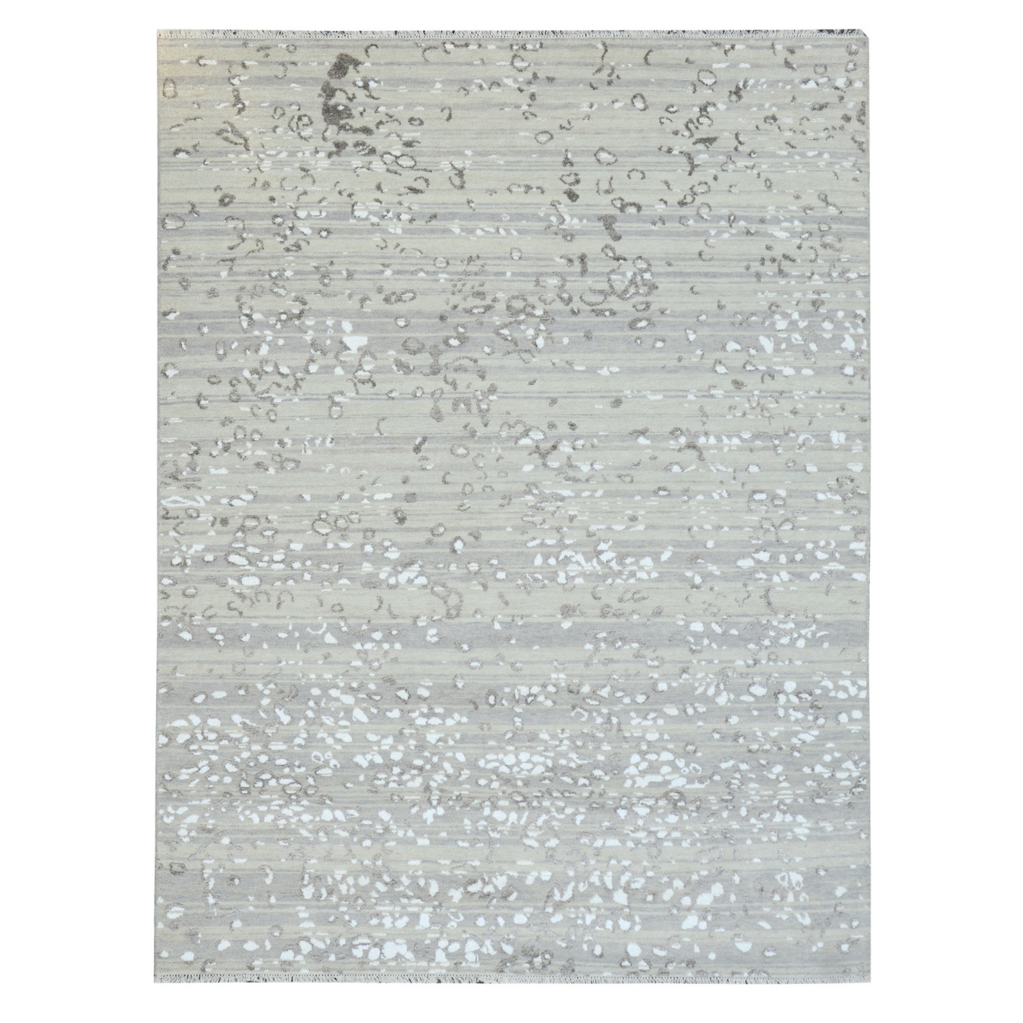 An exquisite expression of modern elegance, this hand-knotted carpet is crafted from 85% hand-spun wool and 15% natural silk. Its serene mist grey palette is layered with delicate abstract motifs in ivory and taupe, subtly revealing a soft sheen that shifts with the light. The refined texture and tranquil design make it a luxurious foundation for contemporary and classic spaces alike.
