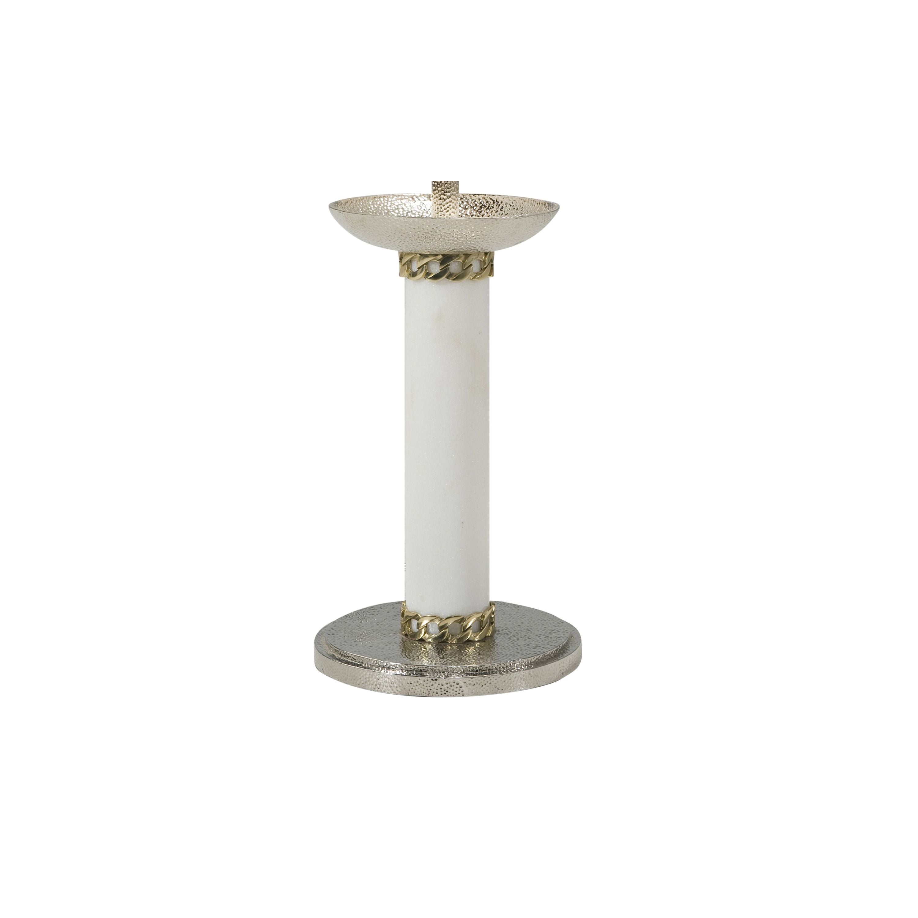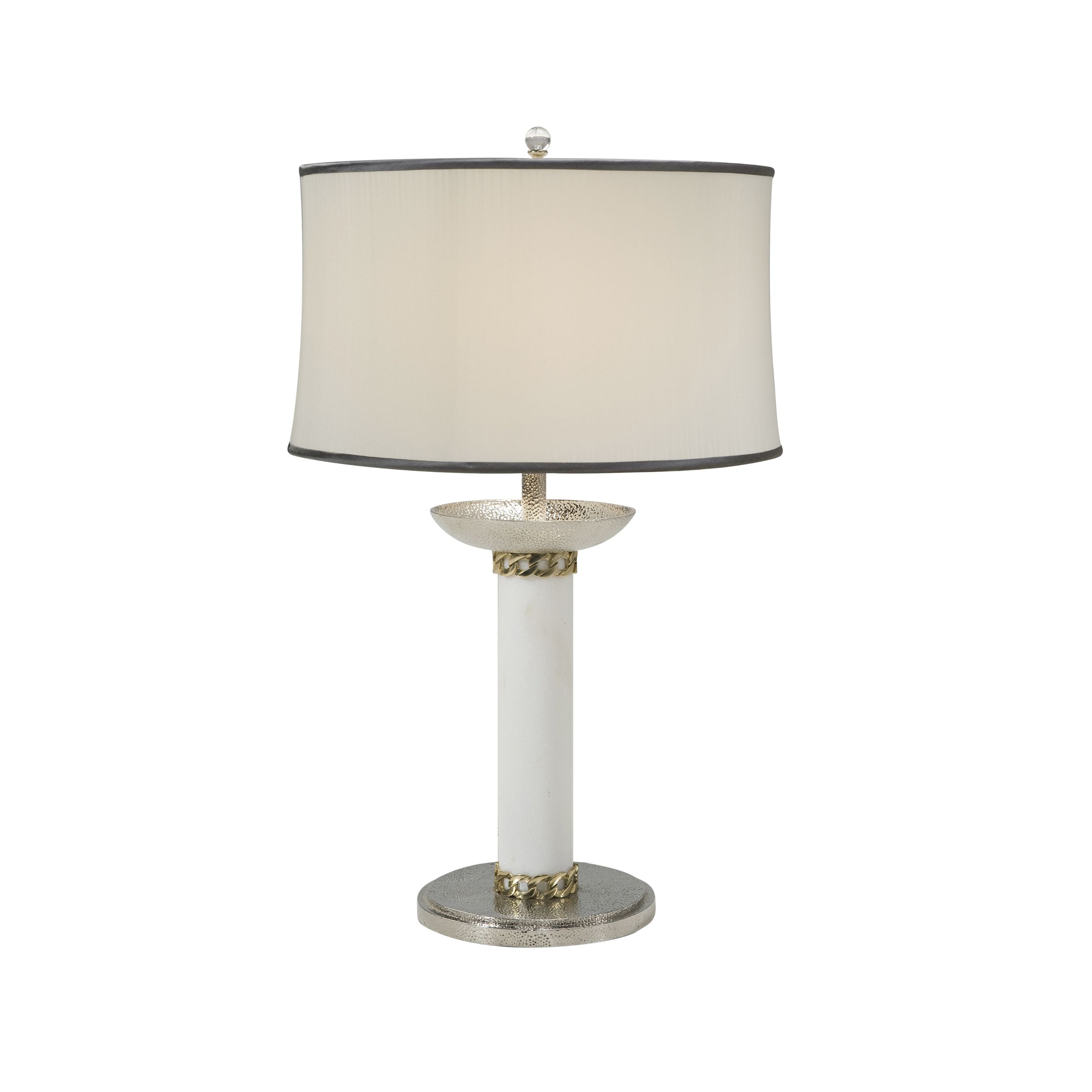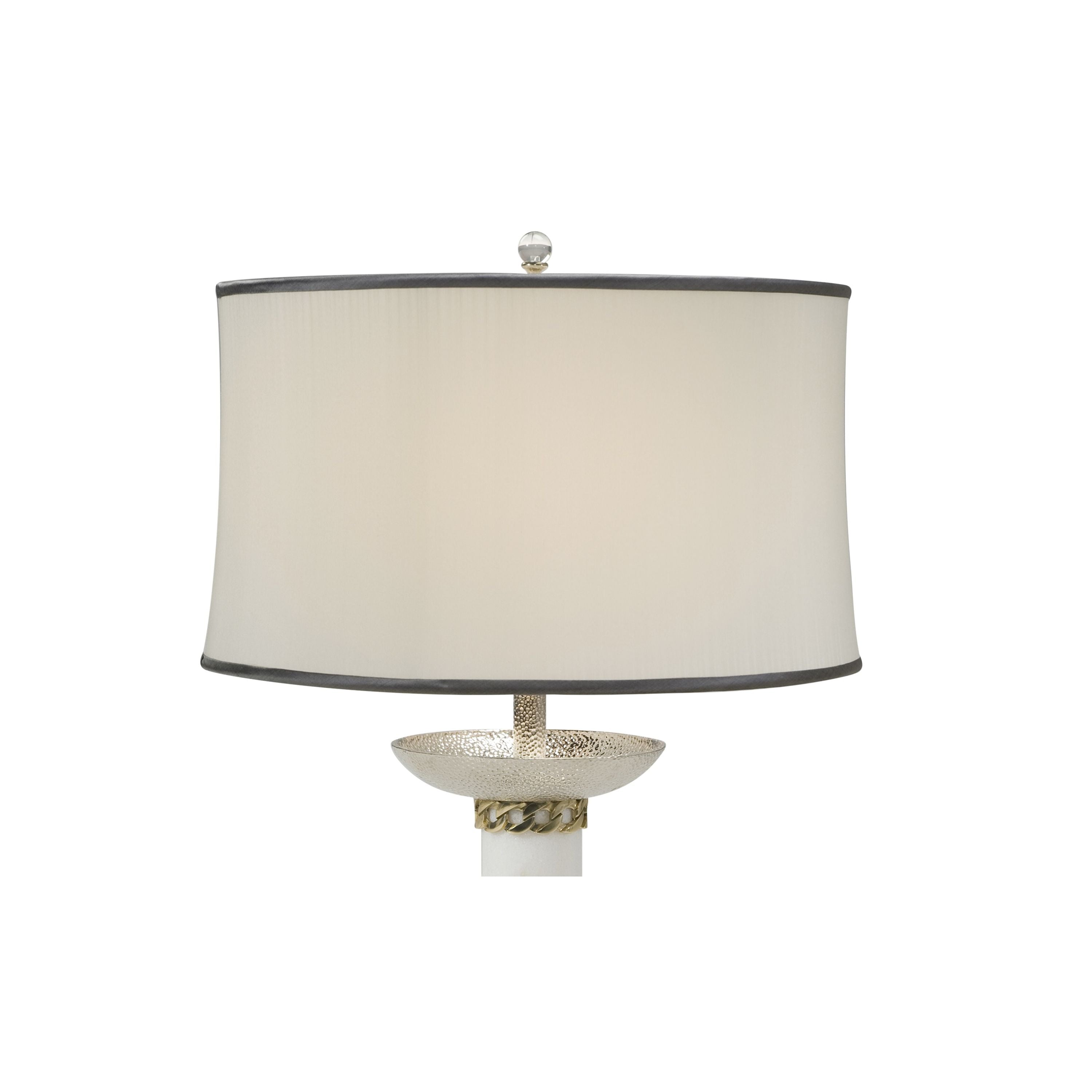 A fusion of refined metals and timeless materials, this table lamp features a nickel-plated brass structure accented with white marble and decorative chain motifs. Topped with a soft drum shade, it’s an ideal accent for bedside tables, console surfaces, or luxury lounges—where elegance meets function in every detail.