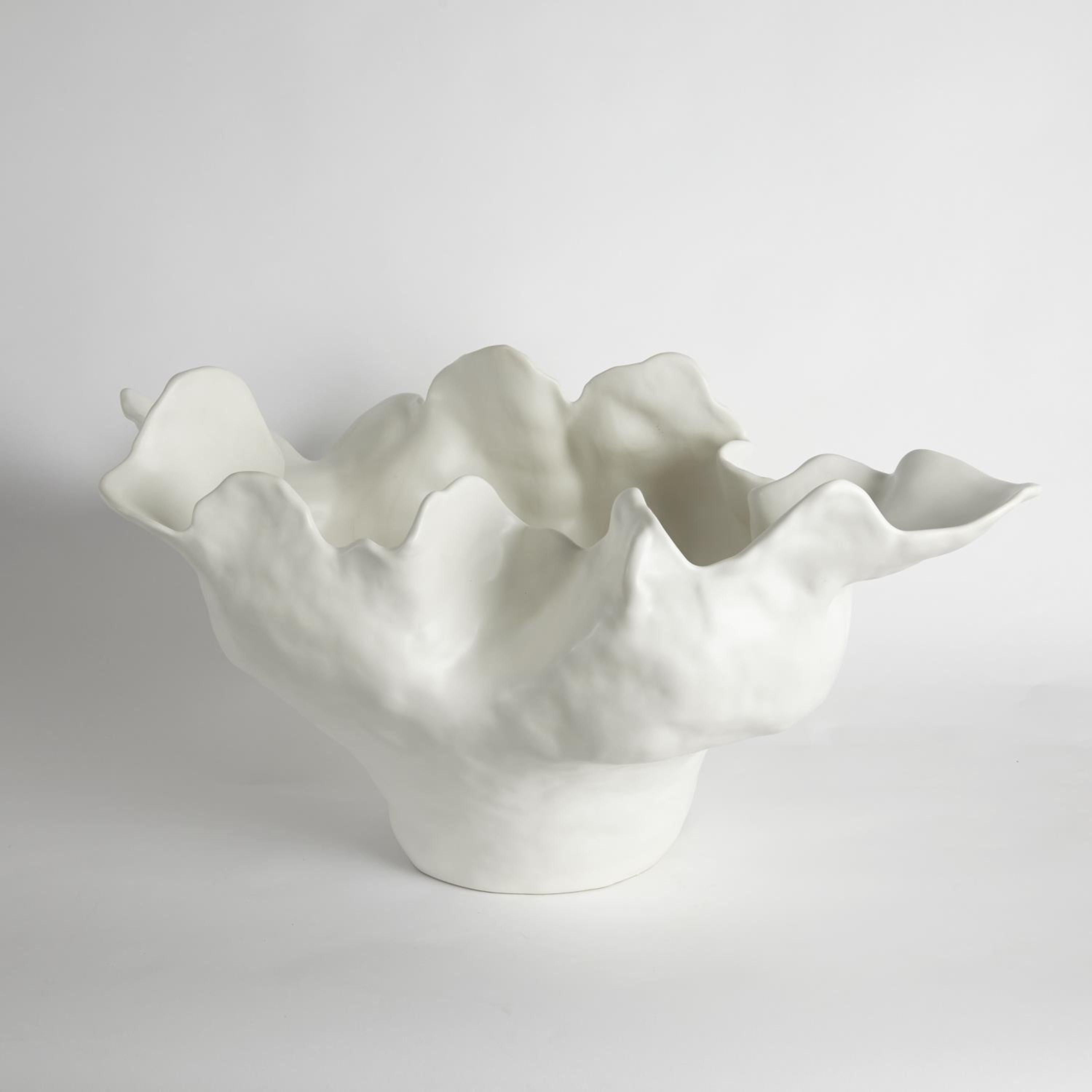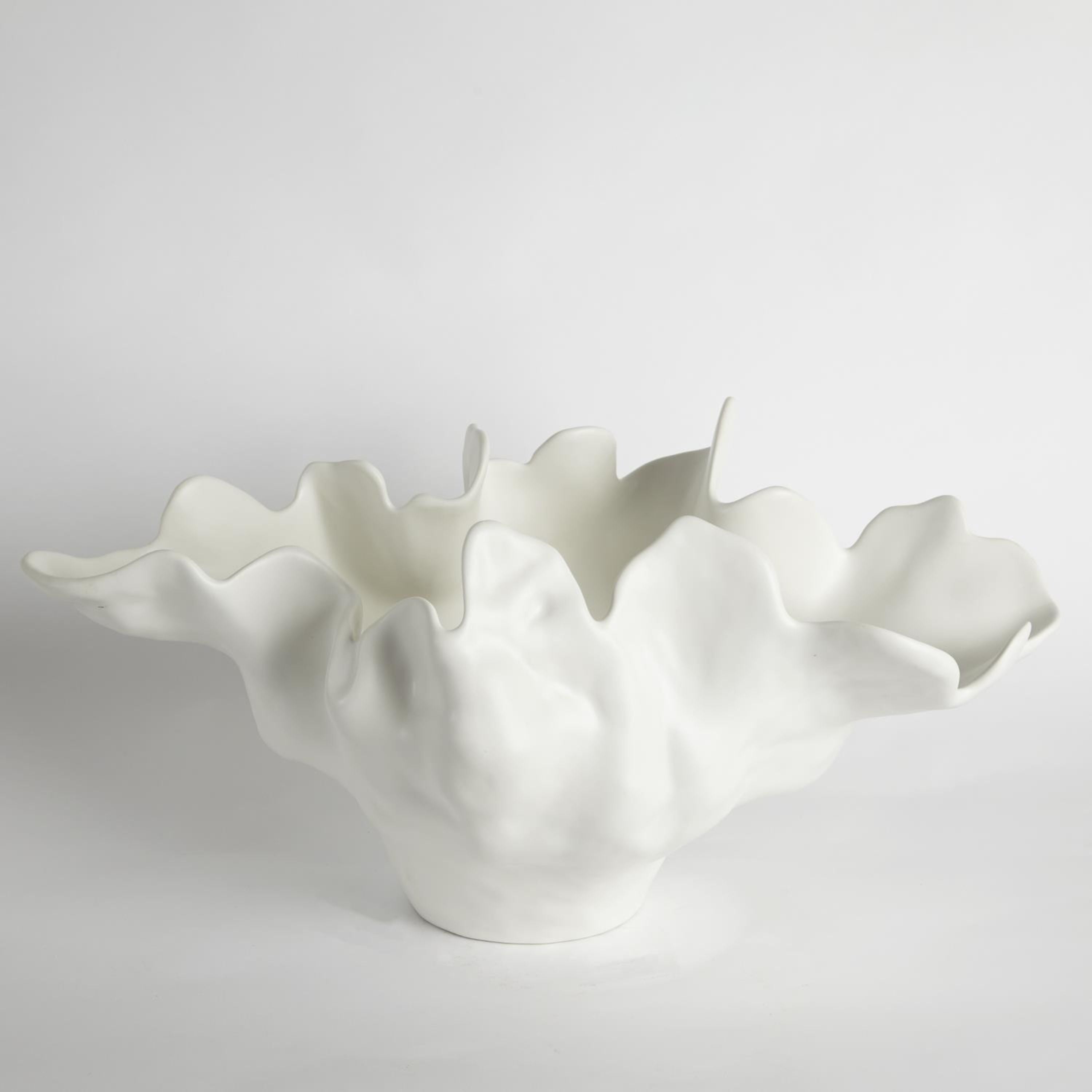 Based on the popularity of our Meteor Bowls, we have created two new sizes and a new color. The original of this grand statement piece was created by a Portuguese artist whose work first caught our designers' eyes at an art fair in Portugal. It took years of collaboration to arrive at this design that can be consistently produced. Multiple pieces are cast, bound together, and fired. Then it receives a reactive glaze and is fired a second time. There is a tremendous amount of artisan work that goes into every piece. Entire rooms could be designed around this beautiful and functional sculpture.