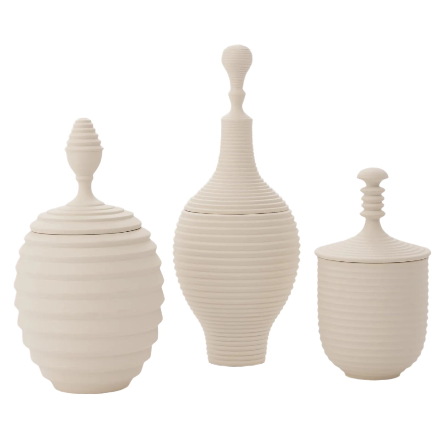 Part earthy and part feminine elegance, the Orion Jars will grace your space with complex matte textured neutrals. One of each is highly recommended!