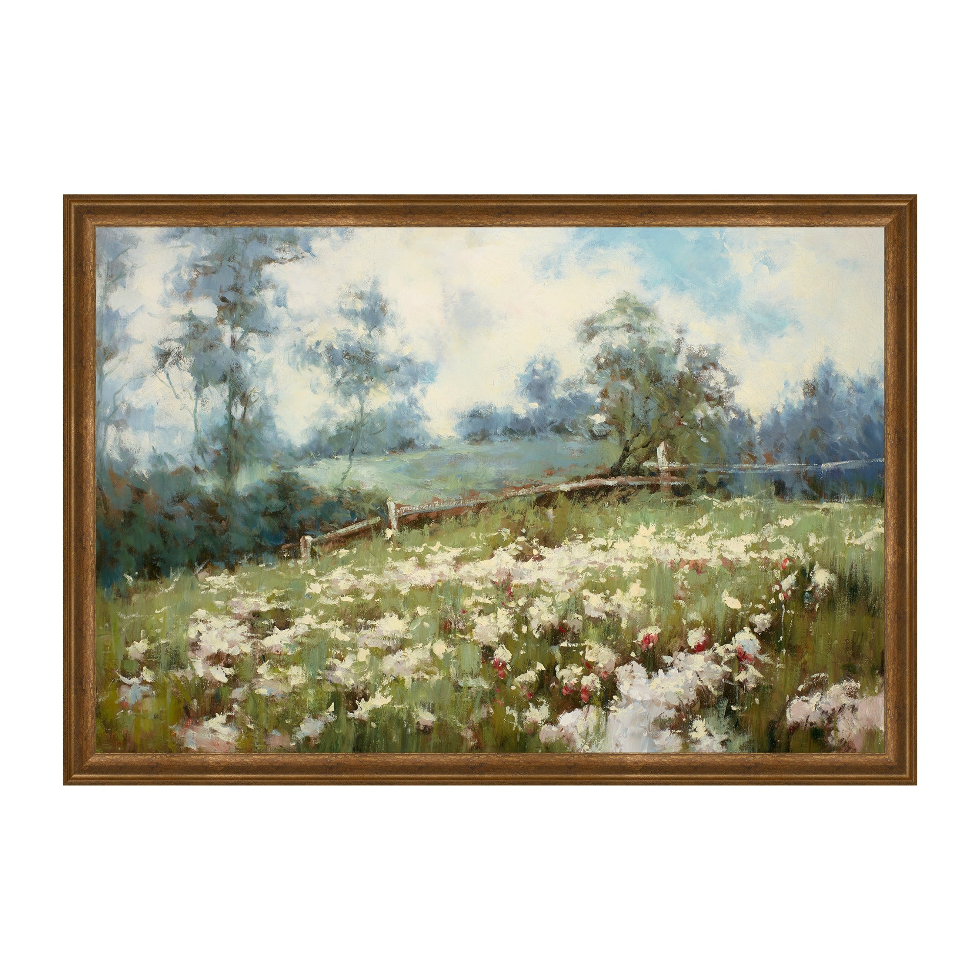 This painting portrays a tranquil woodland scene in early autumn, where slender birch trees with golden leaves line a gentle stream. casting warm highlights on the rippling water Splashes of red and earthy tones in the undergrowth add richness to the composition, creating a serene and inviting glimpse of nature’s quiet beauty.