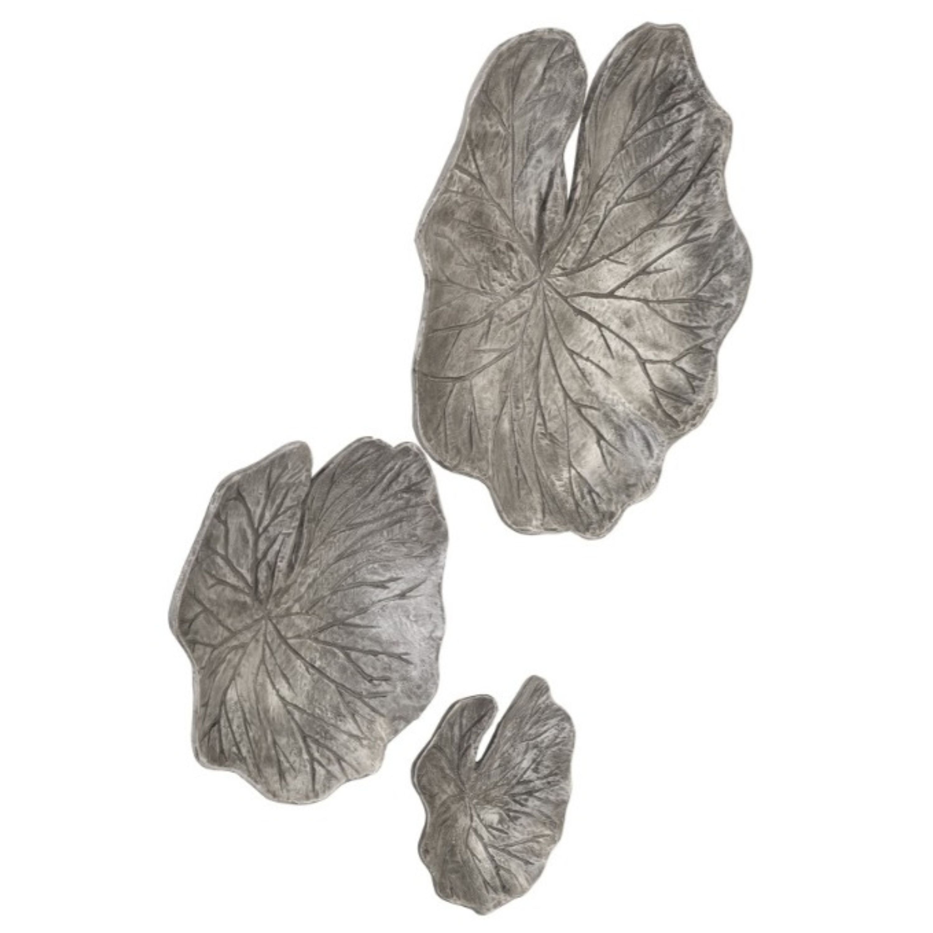 One of the most sacred symbols in some cultures is the lotus leaf. It’s also one of the most beautiful natural elements in the world. We’ve captured that loveliness with our Lotus Leaf Wall Tile Set, which is made of aluminum in mix of silver and black finishes. The glowing surfaces of these decorative sculptures is silver and the darker veining, which brings the silver sculptures subtle texture, is black. This set of wall sculptures will bring nature into interiors, which is one of the hallmarks of the Phillips Collection ethos, which is modern organic.