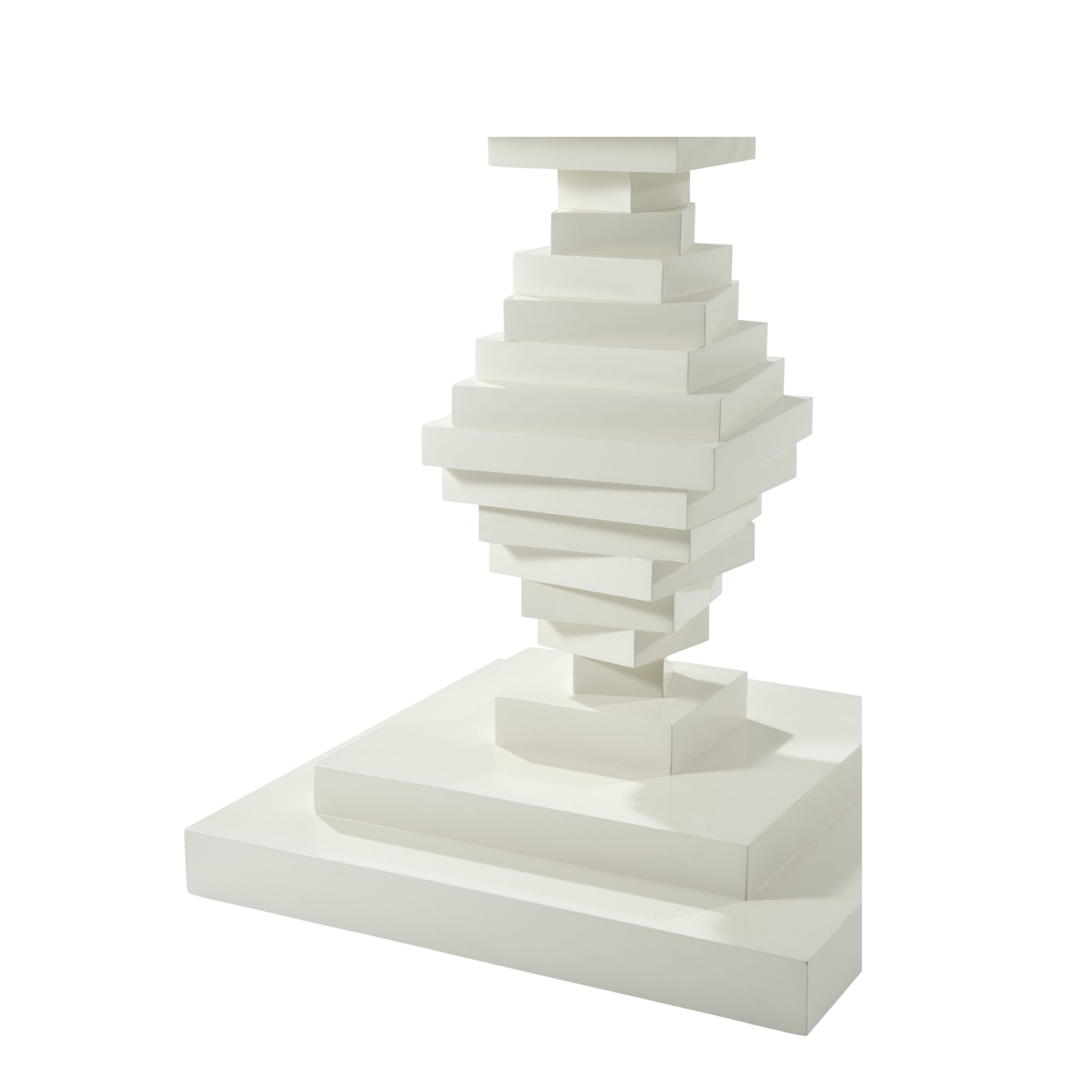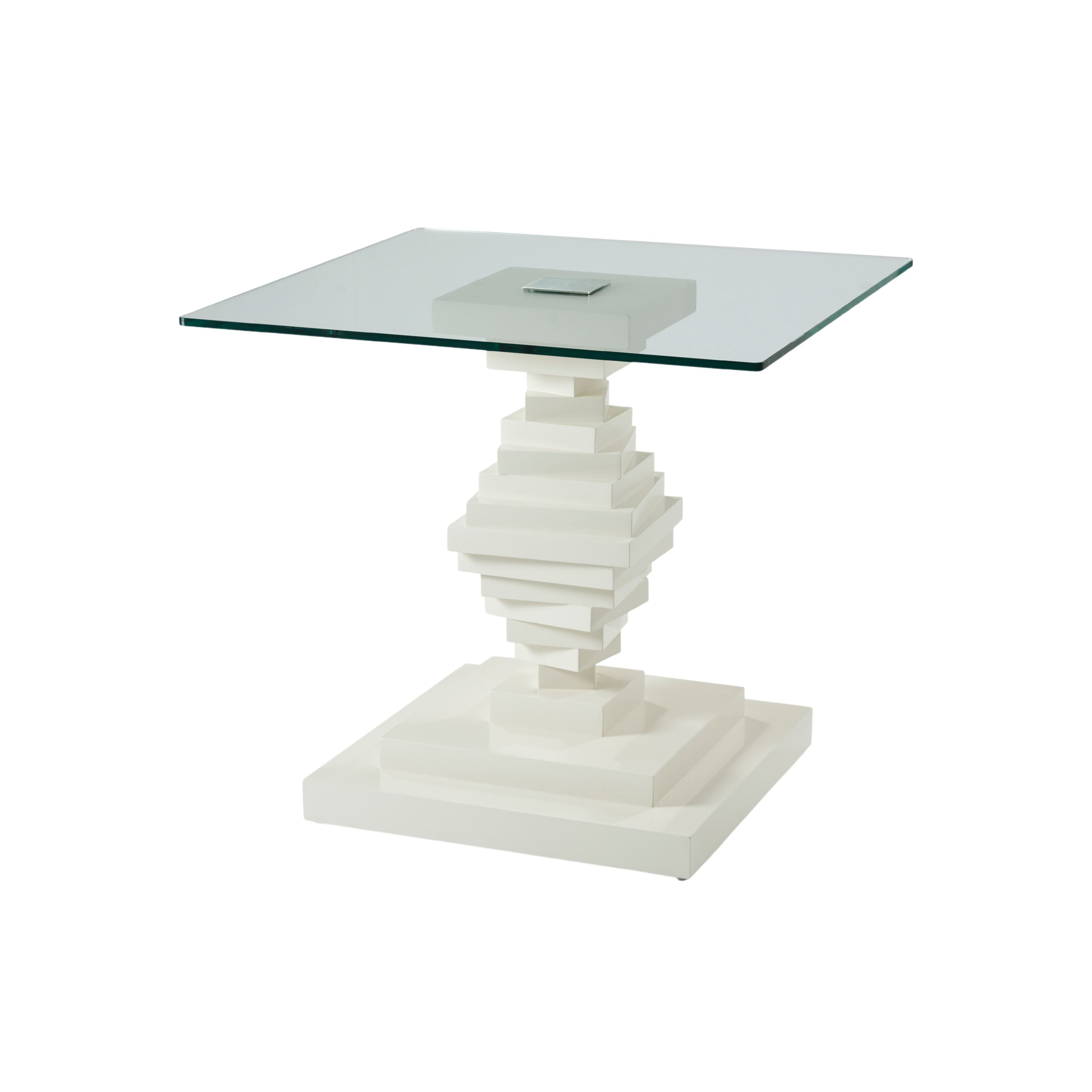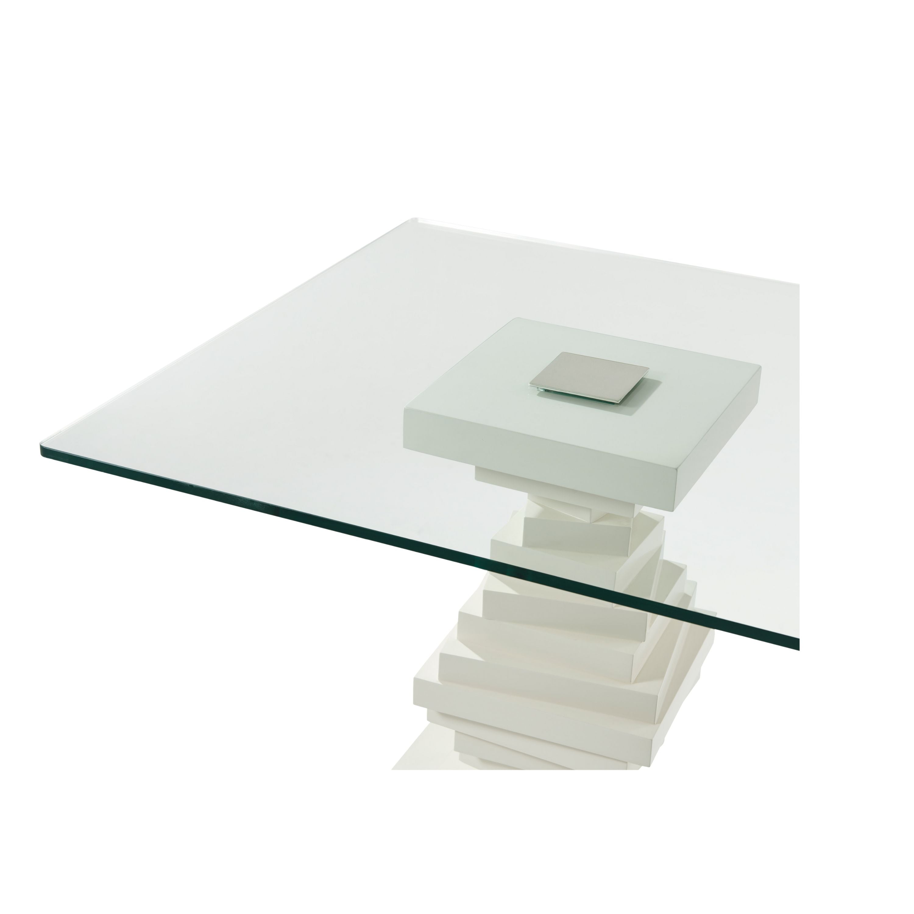 Transitional meets modern with our geometric art deco inspired centre table, Displayed with an edgy frameless glass top in our White Dove lacquer finish.