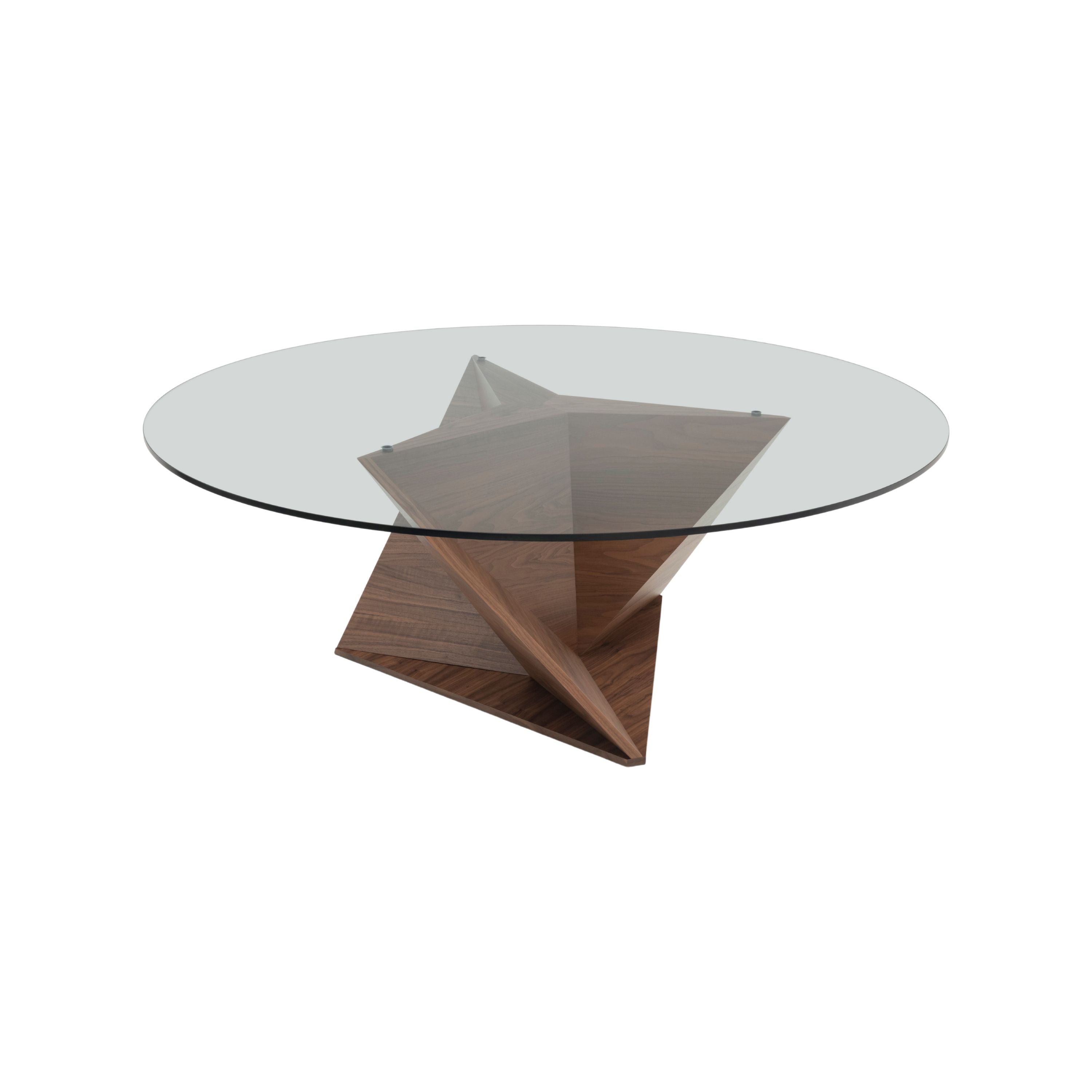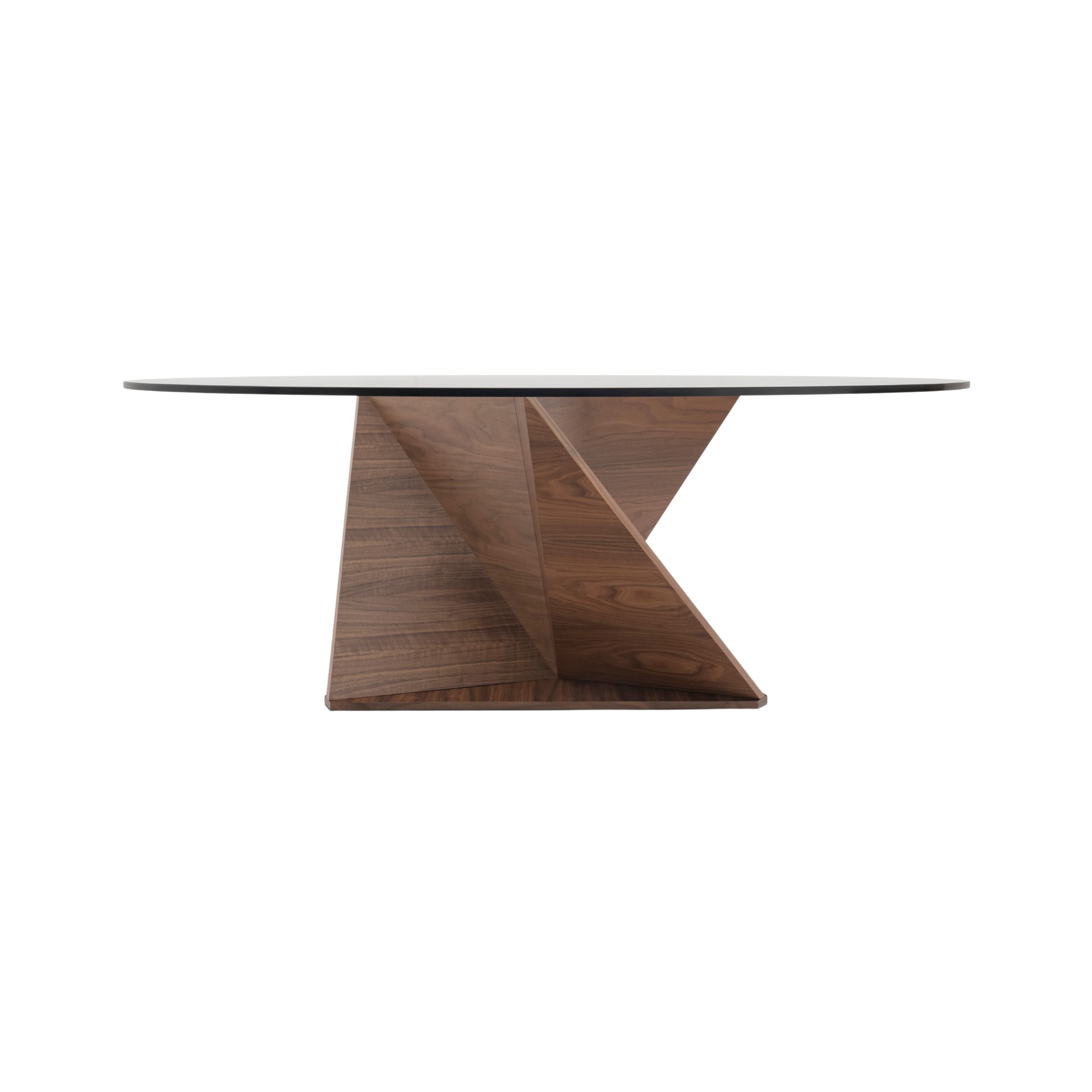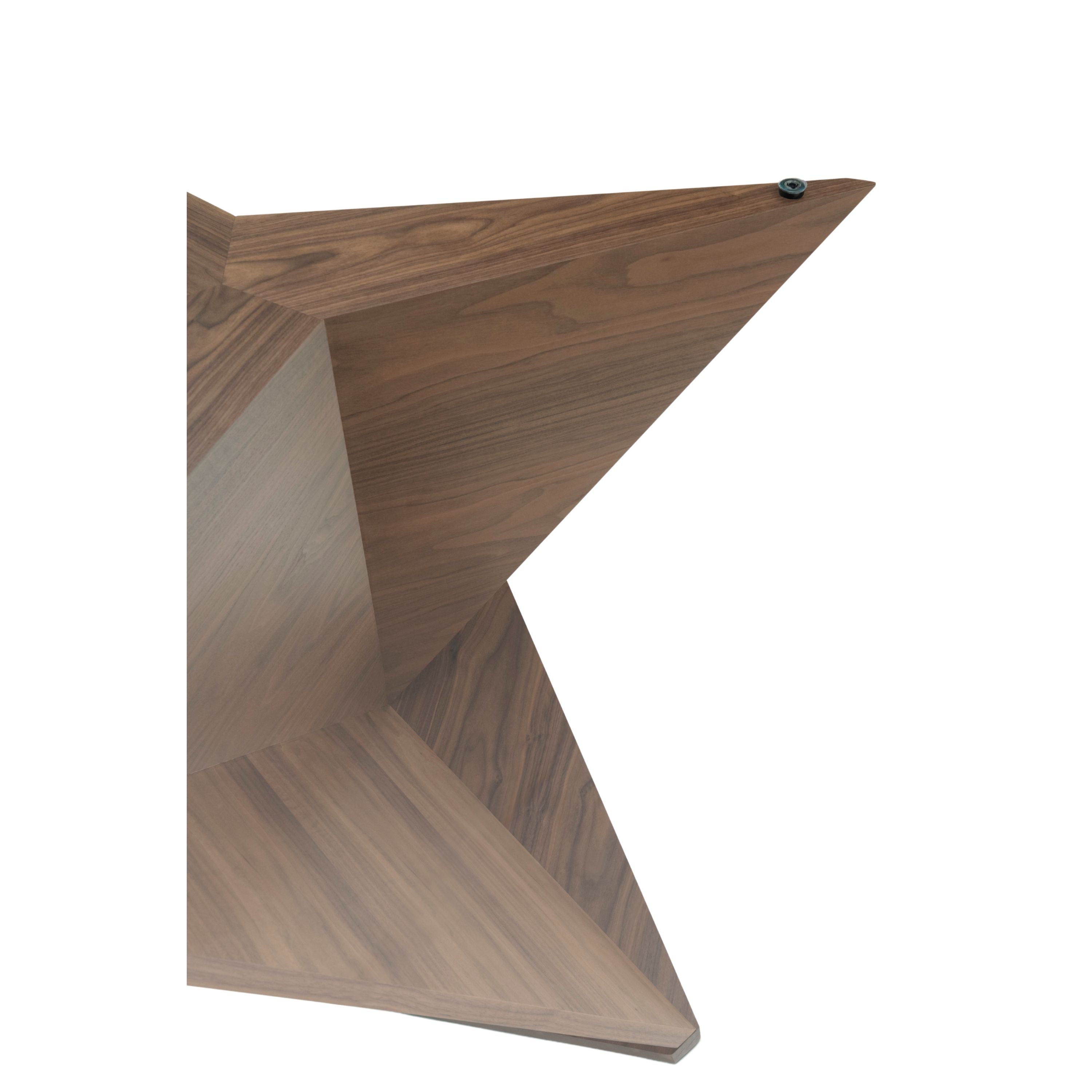 Vértice is a dining pedestal that explores the twisting of planes to generate a scenographic and constructive piece. Designed for large-diameter tops, its shape features a succession of angular faces, cuts and folds, which give the product movement and an unpredictable character. Referencing abstract sculpturing, Vértice reproduces, through series production, the attributes that most attract us in art: movement, admiration and dialogue with space.